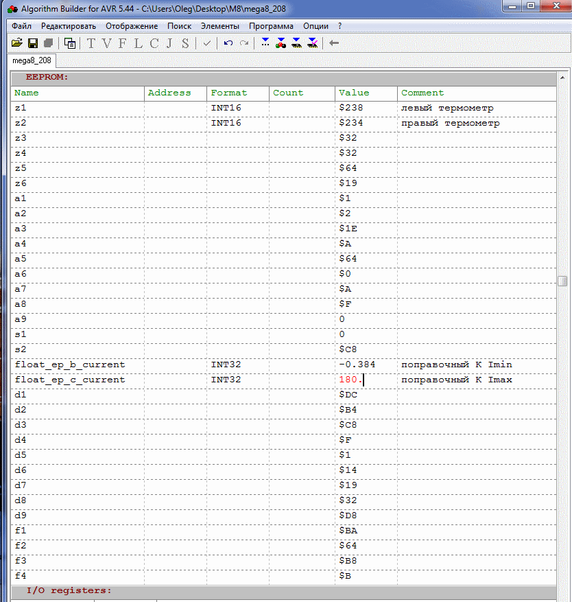 В АБ просто в таблице ставим -0,384, она сама забивает в ЕПРОМ А69ВС4ВЕ. Надо только выбрать 4-х байтовый формать. Показываю.
