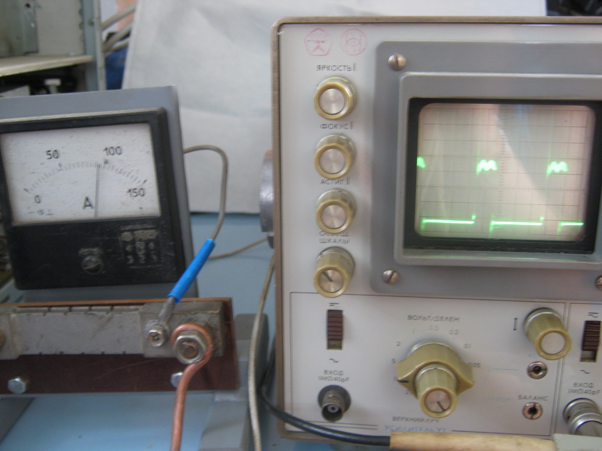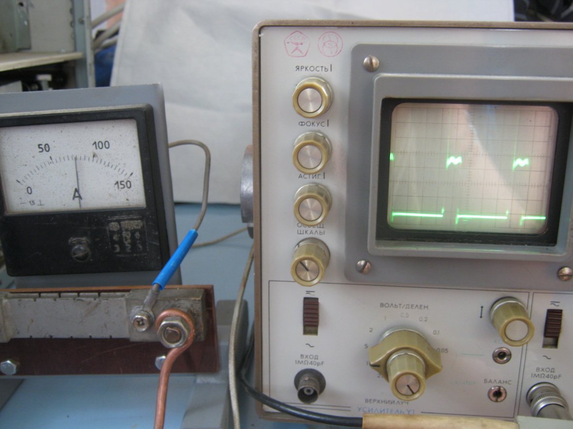 Залита последняя прошивка, разбег между заданием тока и амперметром 10-13 ампер в большую сторону по всему диапазону. ТТ 100 витков, как СЭМ поправил. Тоесть пока калибровать ничего не буду, топом проверю на дуге ТИГ, там и откалибрую,если будет необходимость. Накручивал до 120 А, дальше счетчик энергии на стенке ругается. На мой взгляд немного неправильные осцилы (выход выпрямителя до дросселя.Дроссель пока на распыленке Т150-52Д,если не ошибаюсь.Альсифер сегодня в магазине таки нашли, но метки белые.) Есть несколько вопросов к Sam_soft, но это завтра.Надо обдумать сперва.