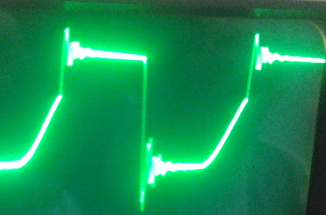 А что ты хотел посмотреть , напряжение ? Если напряжение - то оно такое и есть.Amator писал(а):Ткнулся осциллографом на баласт и вместо ожидаемой треугольной синусоиды увидел откровенный импульс. Что это - дроссель падает в ноль уже при токе 25А?