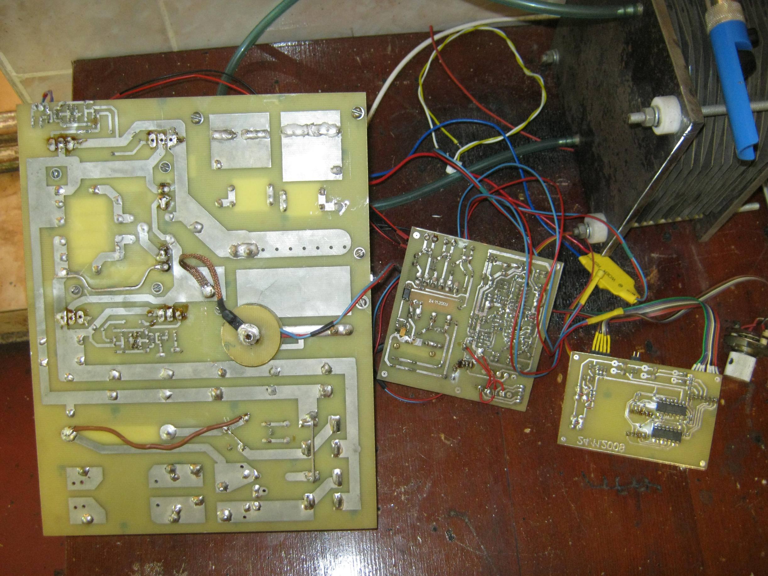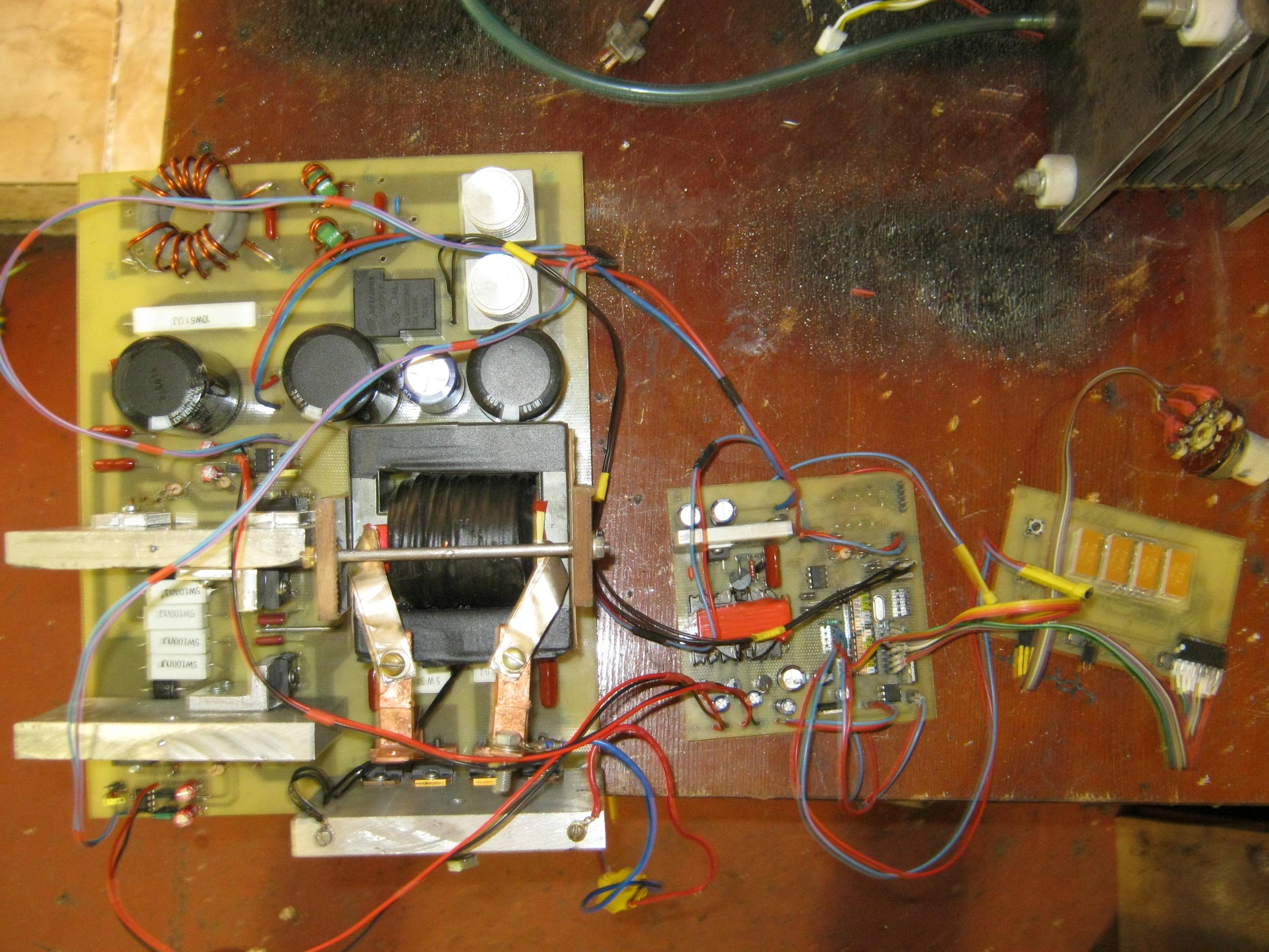 виктор76 Не спешите,подумайте,мужыки тут умные,плохова не посоветуют, если всё сделанно правильно и по советам и схемам автора ,то работать будет 100%,как видно по фоткам собтрали по платкам СЛАВЫ(силовая часть DC),они рабочие,сам по ним собирал,а вот трансик,что бы не было потом вопросов лучше перемотать,проводом,писали много про это,кстати чем изоляцию прокладывали между слоями?,с верху видать лента ПВХ,ей лучше не мотать,поплывёт от температуры, вторая управа лучше,можете её собрать,но как было уже озвученно СЭМом,будет третья весия сварника,только вопрос когда.Первый мой сварник по этой управе продан,друг уломал,работает зверь!Правдо пришлось помучаться из за левых деталек,что у нас на рынке продовались.
