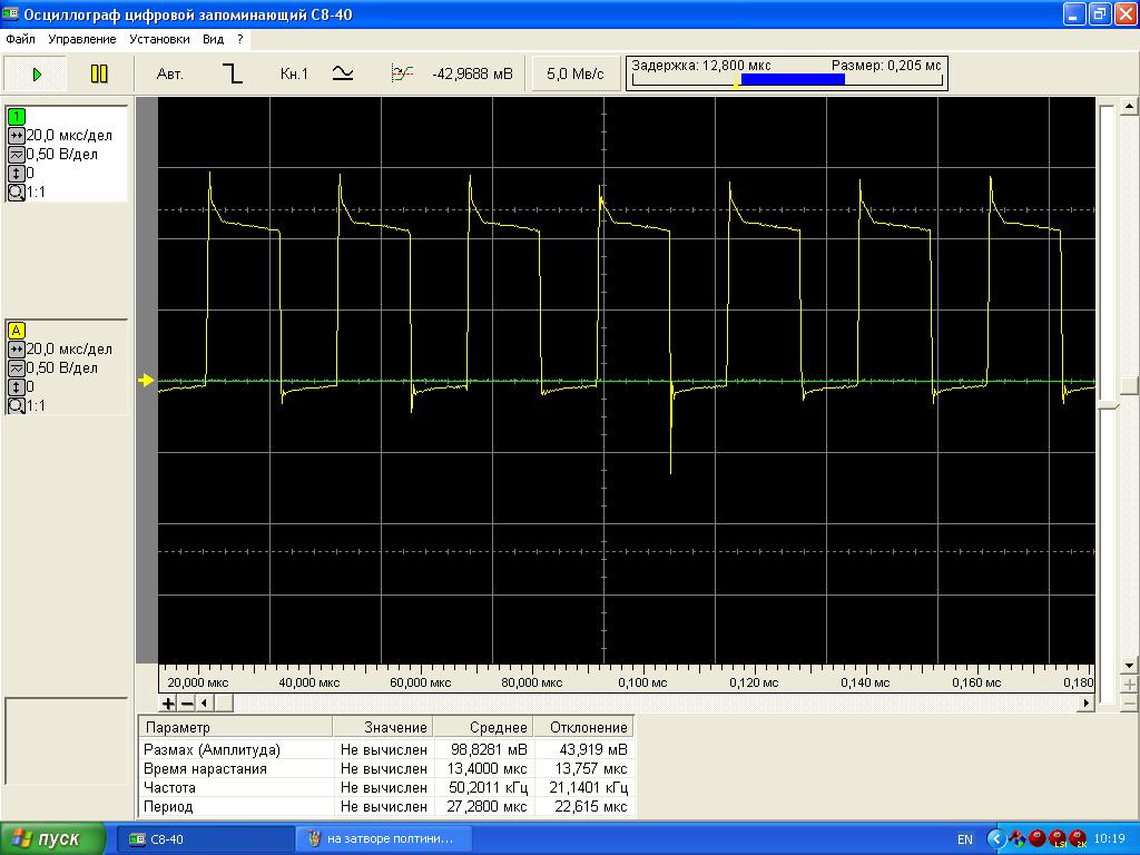 0.5В деление 20мкс/дел