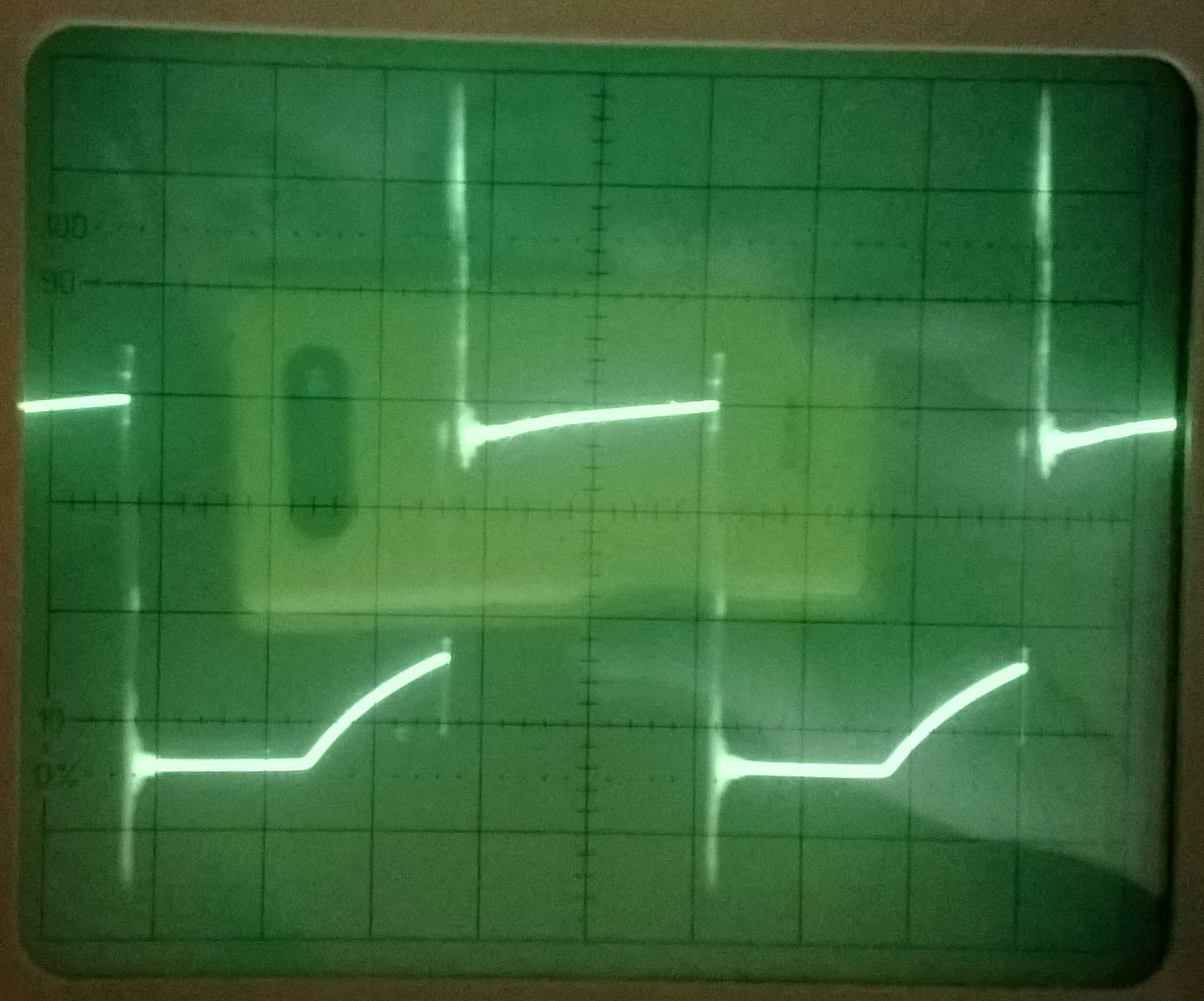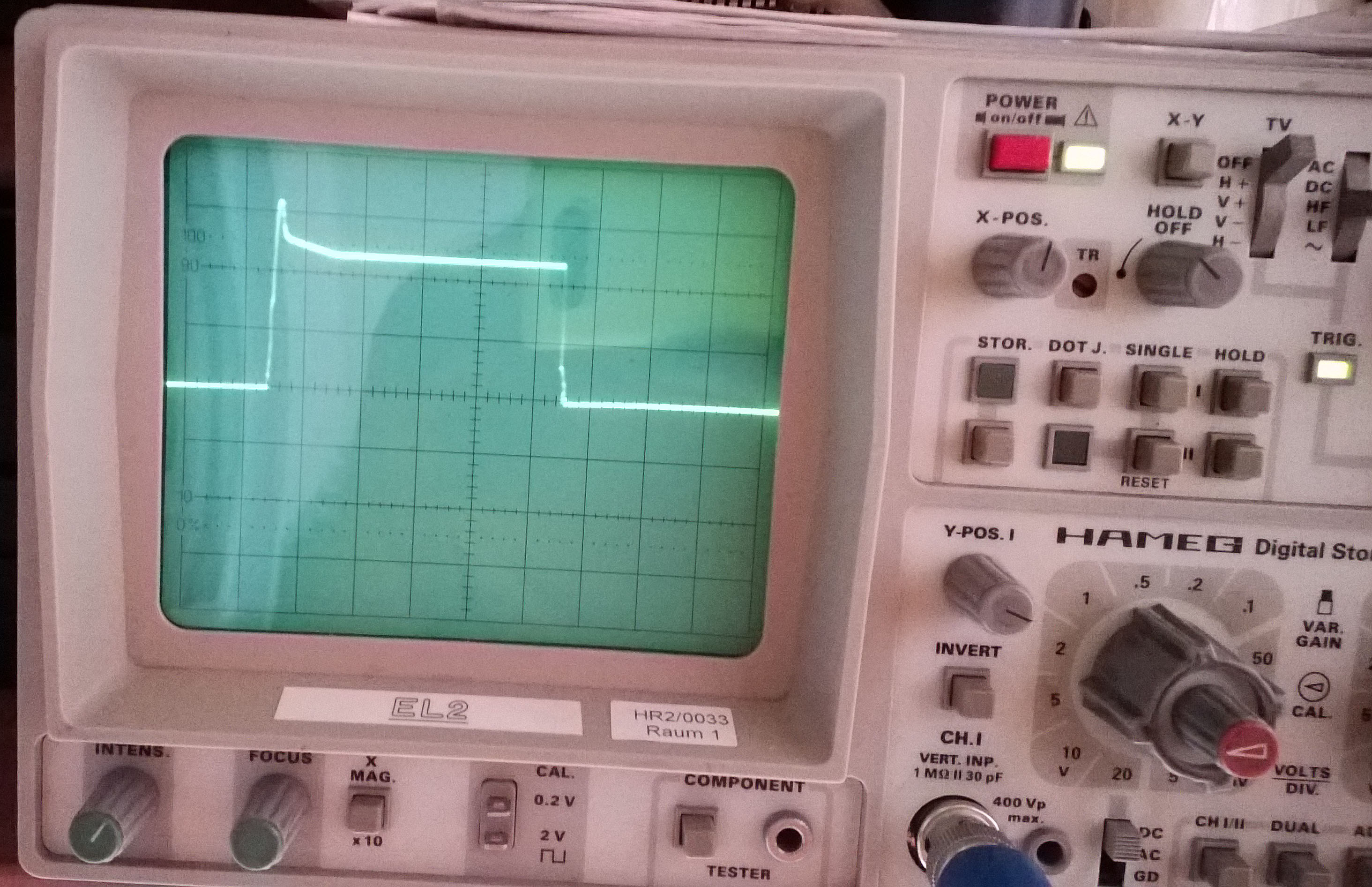0.1Вна клетку, множитель на щупе х10, 0.1 ms, питание 13В резистор 1 Ом