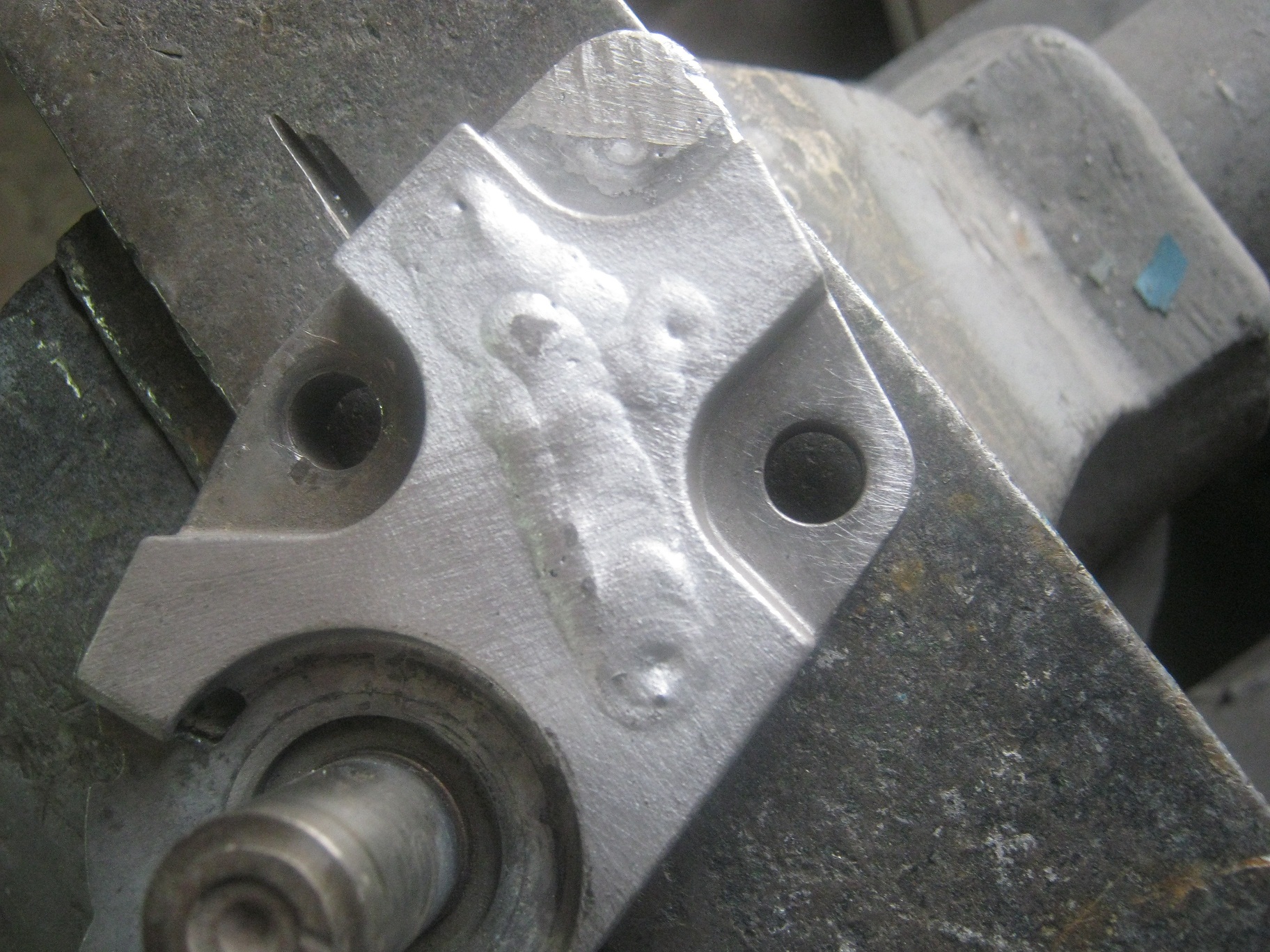 Устроил небольшой треннинг на подопытном кронштейне натяжного ролика ремня ГРМ. Вырезал пару кусочков детали и наплавил на их место 4043.
