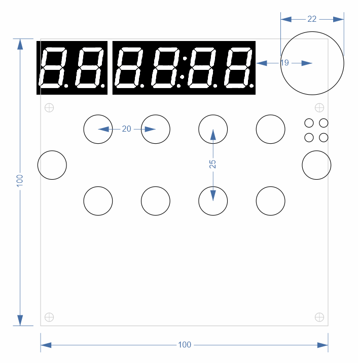 Как ты быстро панельки рисуешь,для наглядности конечно надо. Что за кнопочки по сторонам,или крутилка для подачи,растояние до кнопок будет мало, немного по более будет лучше.Там еще есть кнопка по переключению малого сегментника,это для ручного режима,отображает температуру или метры/мин.Не по ленись почитай еще раз как все работает.И надо уже печатку разводить.