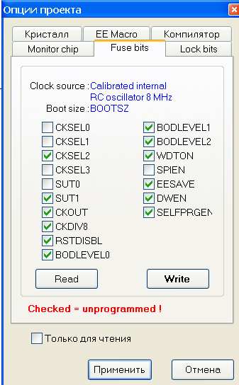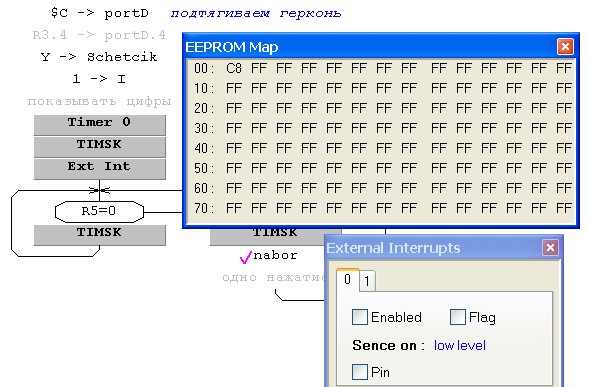 По поводу РС0 (М8) просьба сделать отключение данного выхода по таймеру от 0 до 5 мин. Значение задержки считывать с ЕЕПРОМа, включение оставить как есть. Это не нарушит функциональность устройства для других применений.