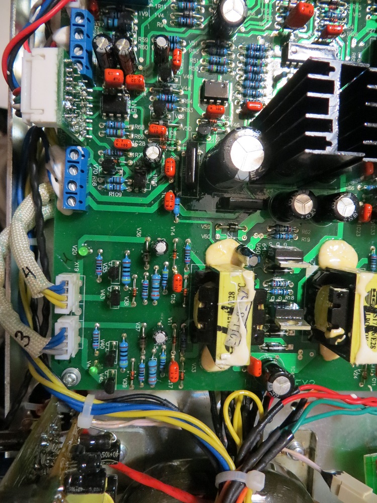 Мне тоже всегда не нравилось исполнение этой платы - толстый слой олова вместо меди. Она уже переделана: четыре отформованных под головки винтов медные пластины, толщиной 1мм, подогнанные и припаянные по печатным проводникам.Komrad писал(а):Конструкция на фото с трансом сильно похожа на "завод-колхоз", особенно диоды на заднем плане.