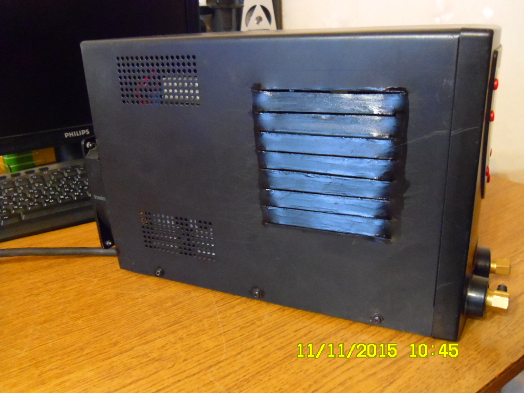Всем Доброго времени!Вот ещё один сварничок собрал,чисто ММА,корпусок взял с бесперебойника,размеры маленькие,получилось не плохо,уже откалиброван и опробован на сварке,варит отлично,только чуть со стеклом напорол,думаю потом переделать.