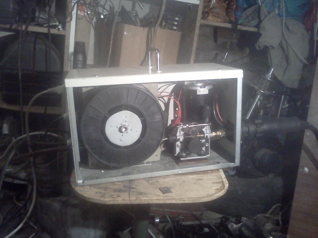 закончил часть сварника- полуавтомат, выкладываю фото. Случайно попалась в магазине протяжка на 24в за 2тр вместе с евроразъемом,по этому самодельничать не стал, купил. Электронная часть: ШИМ с трансформаторным БП (Komrad выкладывал в соседней ветке), жигулевский клапан. Делал сначала все в одном корпусе (в основном блоке что на фото на заднем плане)- отказался по причине веса, габаритов и горелку п/а сложно снимать когда она не нужна (проволоку нужно стравливать обратно на барабан). Варит на мой взгляд очень даже хорошо (хотя опыта сварки п/а не имею).