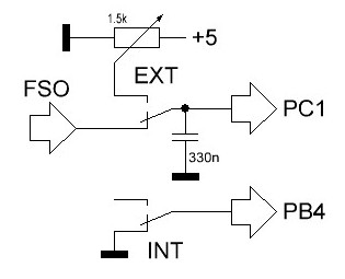 Здесь всё просто. Одной группой переключателя на В4 подаётся признак "внешнее управление/внутреннее". Вторая группа переключает напряжение задания, ШИМ от PWM3/напряжение с резистора.
