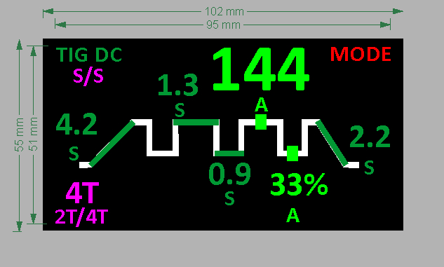 Зона 4T 2T/4T - зона кнопки Fst - По умолчанию 4Т. Режим сохранятся (по началу сварки) и восстанавливается при вкл. Наличие 2Т показывает