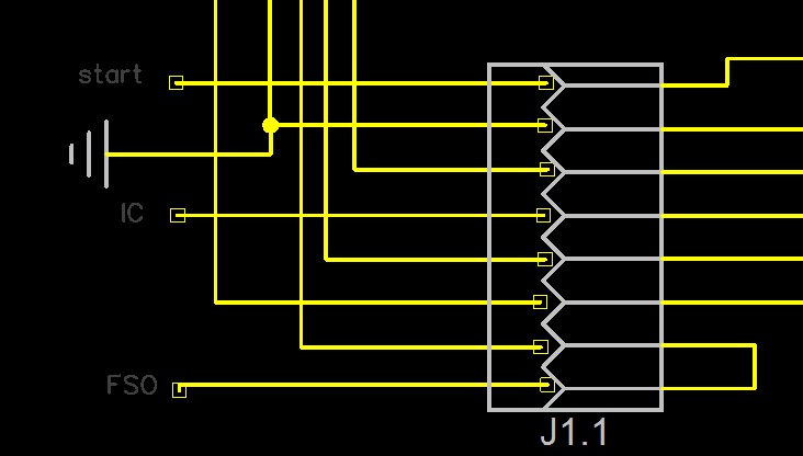 На схеме АТ90 есть разъем J1.1 на 7 пинов, разъемы FCO и IC, всего 8 проводов, если объединить земли J1.1, FCO, IC и учесть 1 висящий на J1.1.