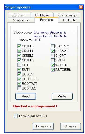 Посмотрите, если не лень, если свежо, правильно-ли у меня стоят ФУЗы? В АБ фузы наоборот, там написано "checked=unprogrammed"