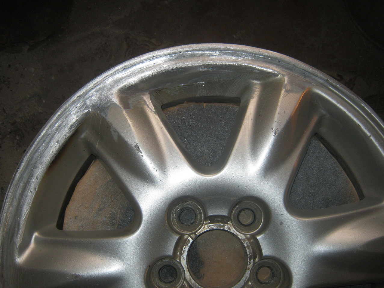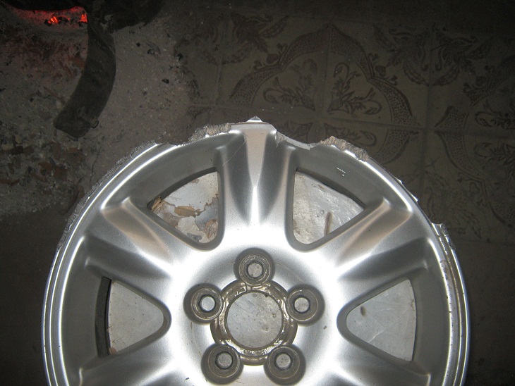Такое впечатление, что никто не варит...Выкладываю пару фоток одной работенки, собственно последствия праздников на скользкой дороге. Авто занесло и диск принял на себя бордюрный камень. Недостающие куски наплавлены присадком. Финального фото нет, хотя работа закончена - забыл взять аппарат. Может завтра добавлю фотку.