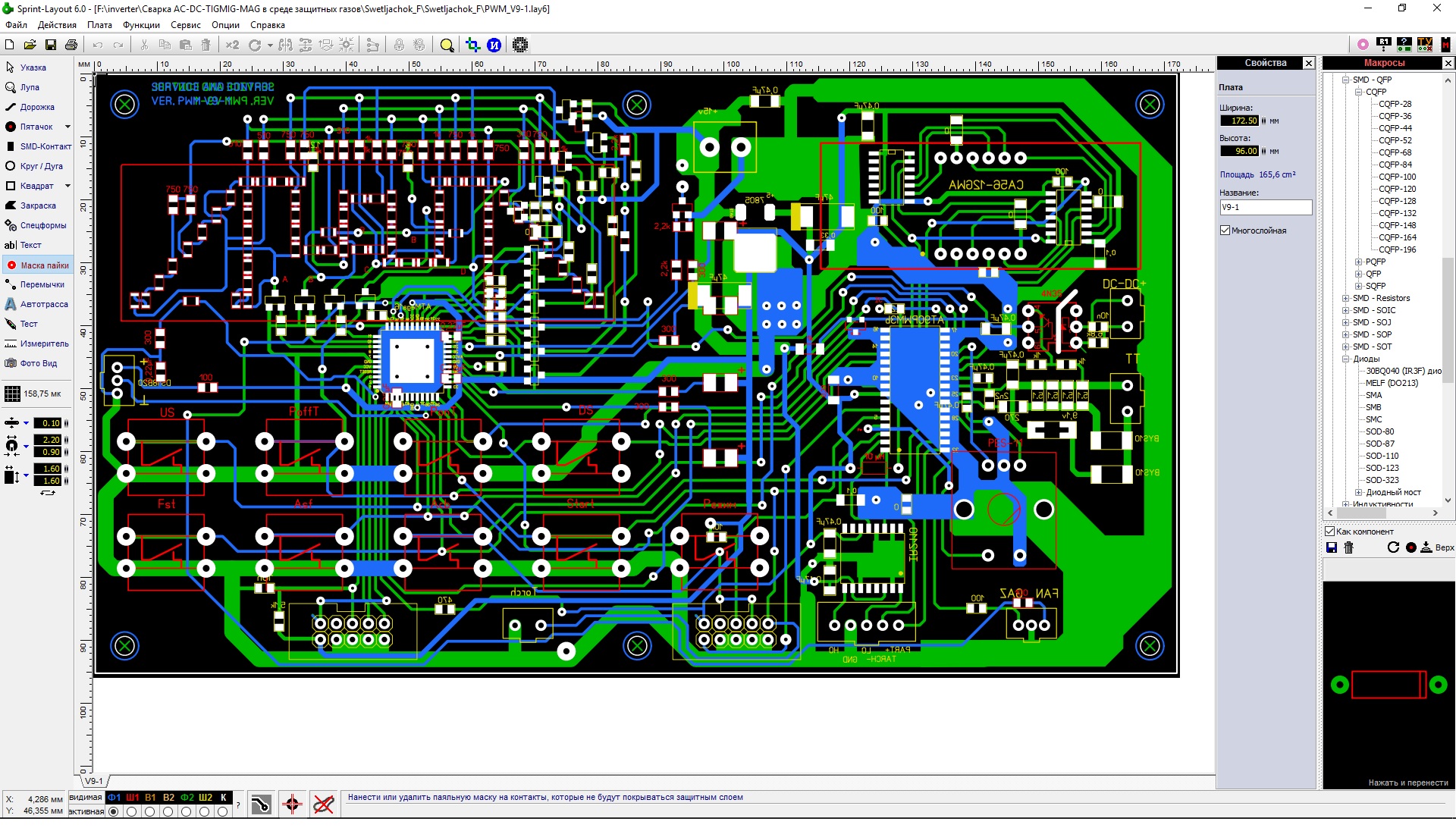 Уважаемый K_L . Я смотрю у вас у самого не было маски пайки на этих эл-тах . Что ж вы не написали в форум ? ? ?K_L писал(а):ROMA, перед отправкой плат на изготовление всегда нужно смотреть маску пайки. Для этого есть кнопочка в Sprint-Layout. И при проверке маски нужно не забывать смотреть слои отдельно (Например при просмотре слоя со стороны деталей Ф1 необходимо гасить слой Ф2 и соответственно наоборот, так как при одновременном просмотре можем на одном из слоев потерять маску если контакт друг над другом и на одном из слоев маски нет, то этого не будет видно)