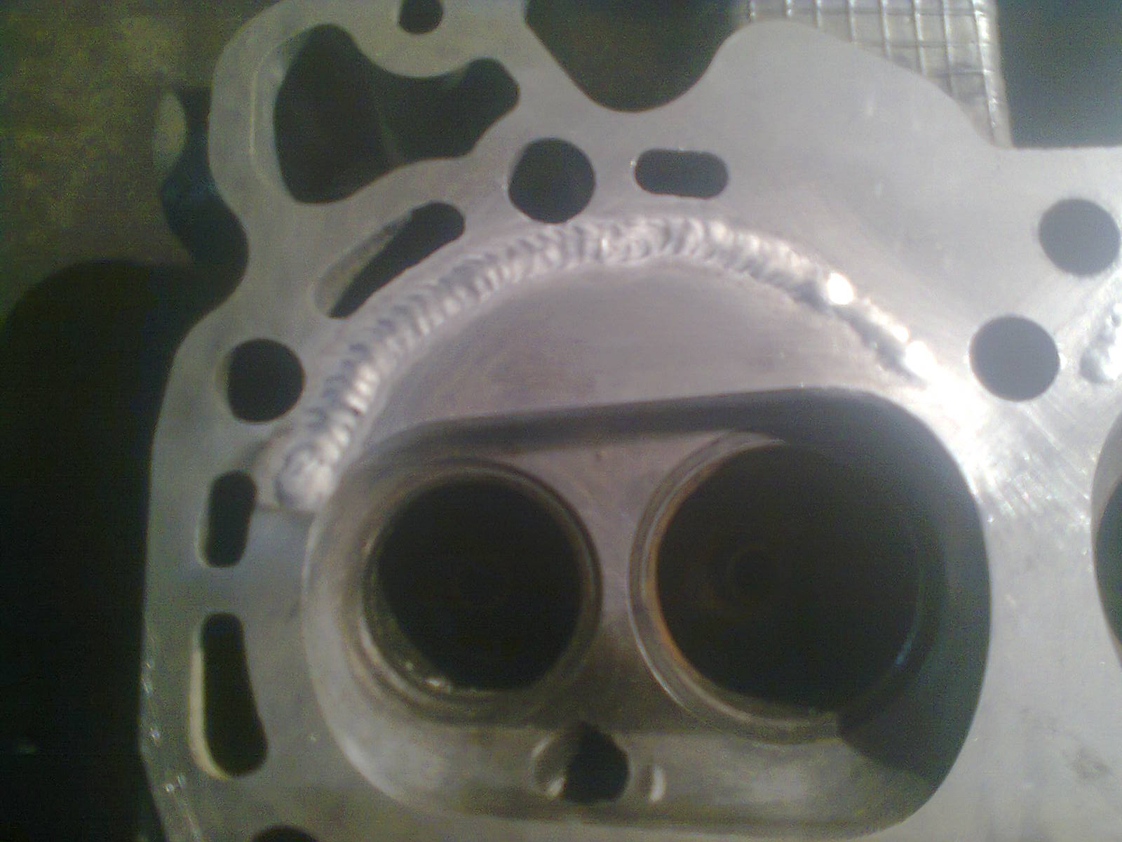 Сегодня заваривал на ГБЦ каверны , коррозия скорее всего: дефекты по контуру кольца прокладки. Ток 150 А был, каверн две, общая длинна 23 см. Завтра на шлифовку.