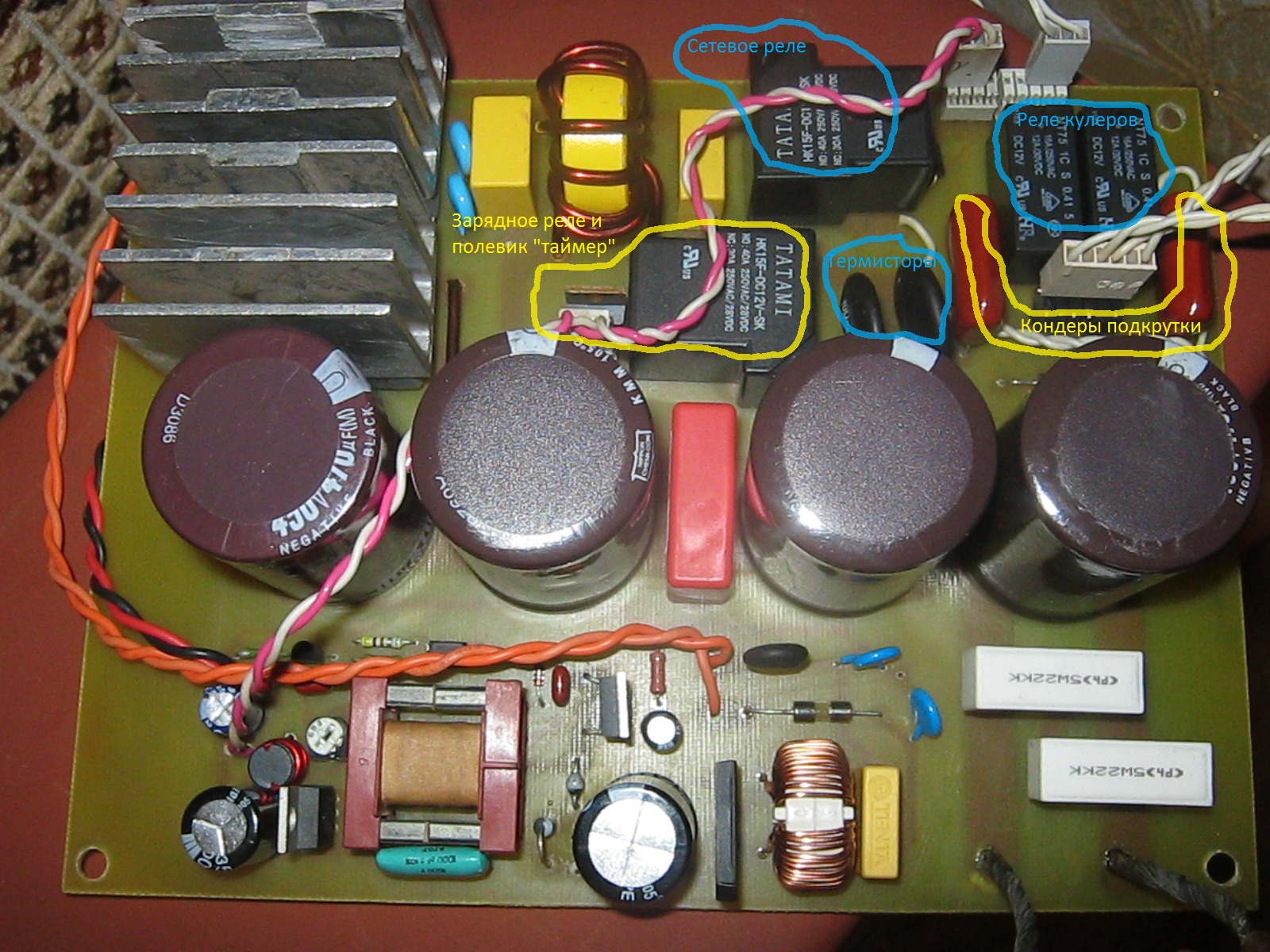 Как БП запустится, сразу сработает сетевое реле - входной выпрямитель будет подключен к сети 220.