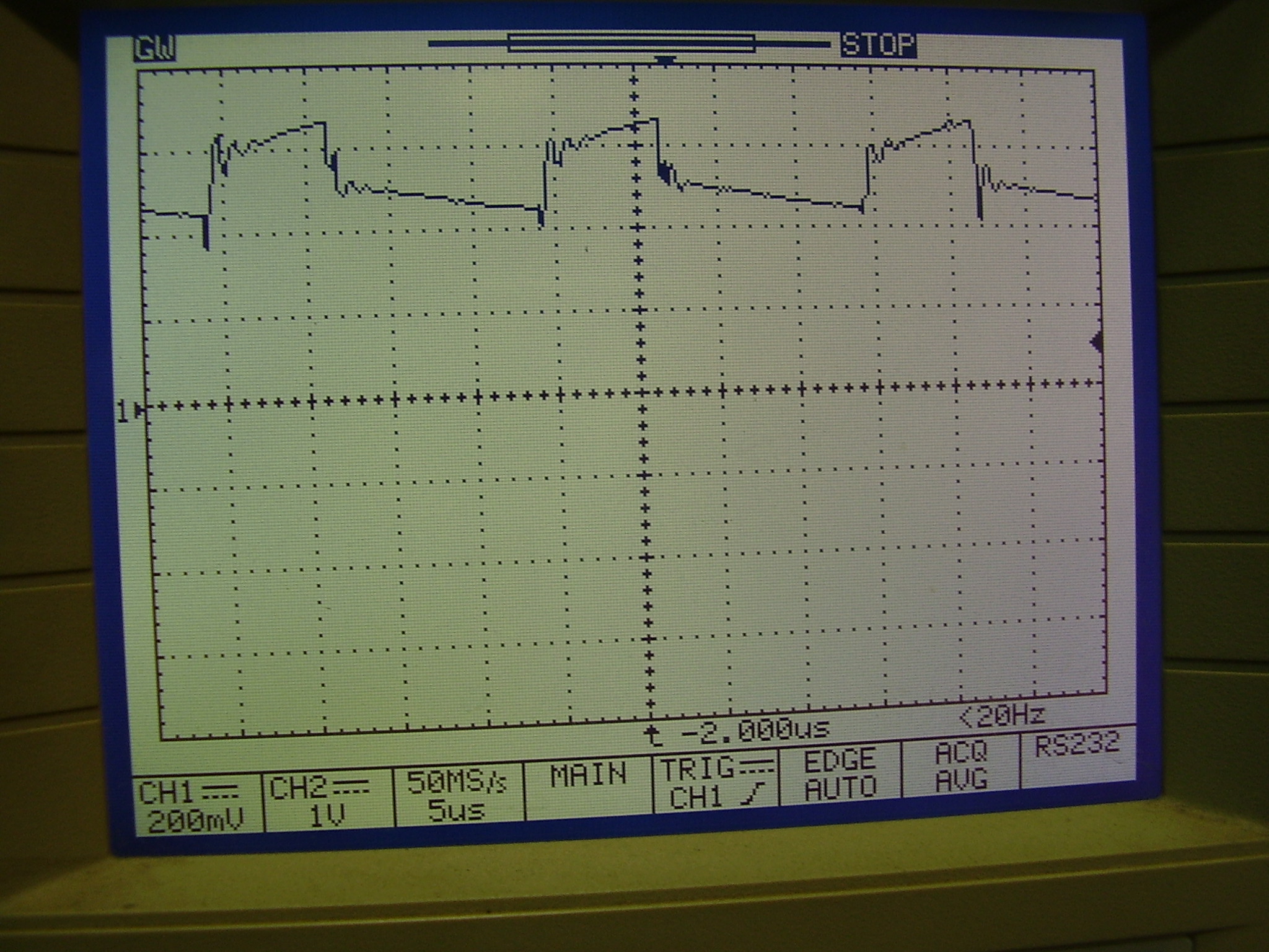 Ещё заморочка- вертикальных участков на осциллограмме не должно быть по определению, видать, наводки