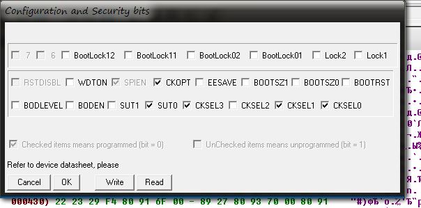 Люди, подскажите или ткните, где увидеть правильно установленные фьюзы для прошивки контроллера по схеме, опубликованнойhttp://www.samopal.su/node/24. И какая частота кварца?