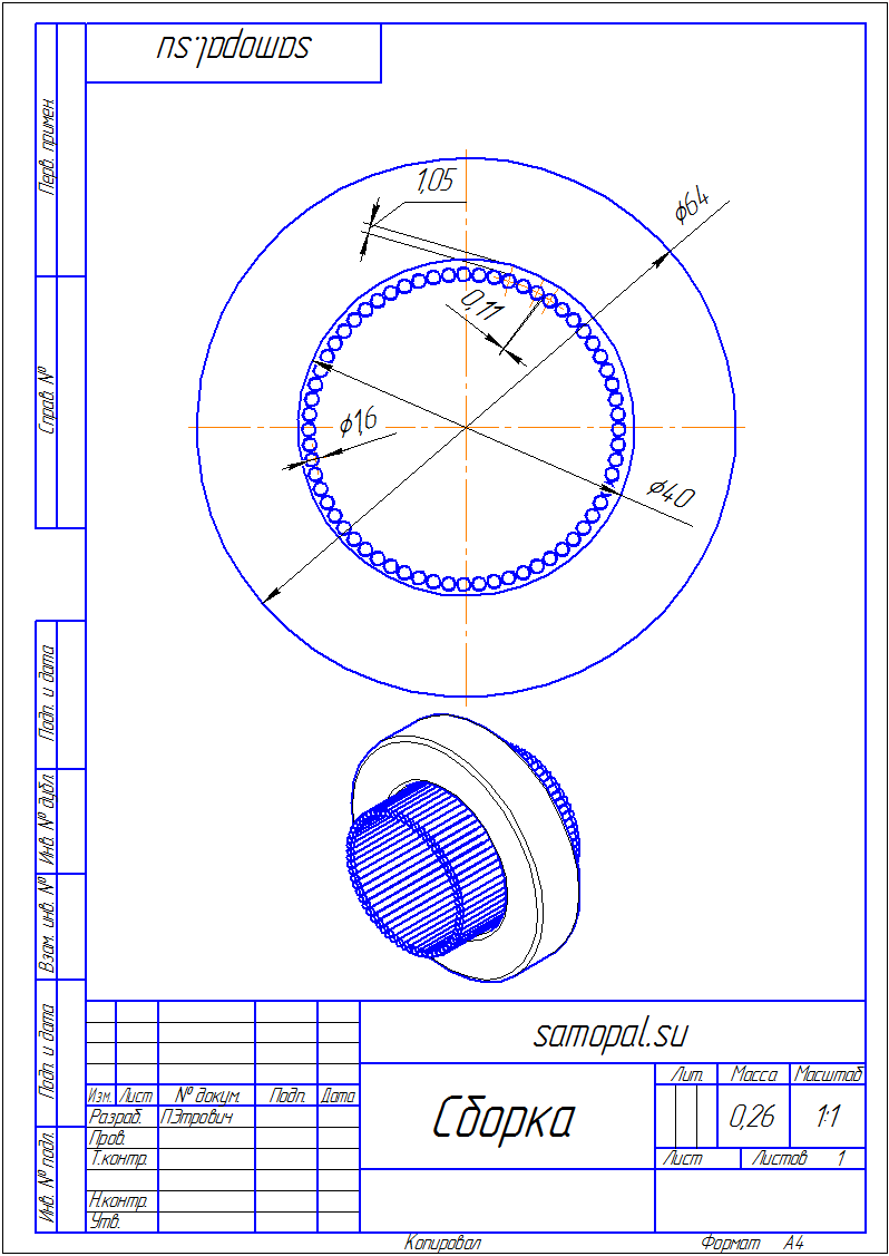 Нашёл эту модельку полугодовой давности. Сделал с неё чертёжик. Получилось действительно 64 витька. Провод 1,6, т.е. 2 кв.мм. Значит если в восемь жил, то получается 8 витьков. Маловато будет.