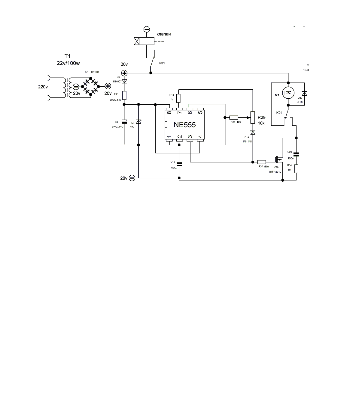Именно так, данный недостаток не имеет значения если источник входного напряжения поддерживает напряжение примерно +/- 0.1в. Однако сама идея заключалась использовании сварочного источника тока для питания, чтоб отказатся от дополнительных блоков питания. Схема в принципе работоспособна, (я даже фиата поварил полностью) но очень неприятная ситуевина когда при начале сварки подача начинает дергать проволоку и получается прерывание дуги (после 1-2 с сварки подача стабилизируется). Дело в том, что среднее действующее напряжение хх инвертора в MIG составляет около 35в (по крайней мере у меня) и при начале сварки оно падает до заданного, к примеру до 22в, вот и получается бешенный перепад входного напряжения и как следствие изменение скорости проволоки в момент касания детали. В общем планировал доработать, ибо надо еще жигуля поварить, но пока руки не дошли...Komrad писал(а):Тоесть при изменении входного напряжения меняются обороты?