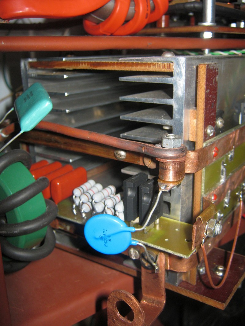 Варистор подключен нижним выводом к отводу на байонет ( на "железку"), верхний вывод в общей точке с холодным концом транса осциллятора и вторым выходом моста (на "держак").
